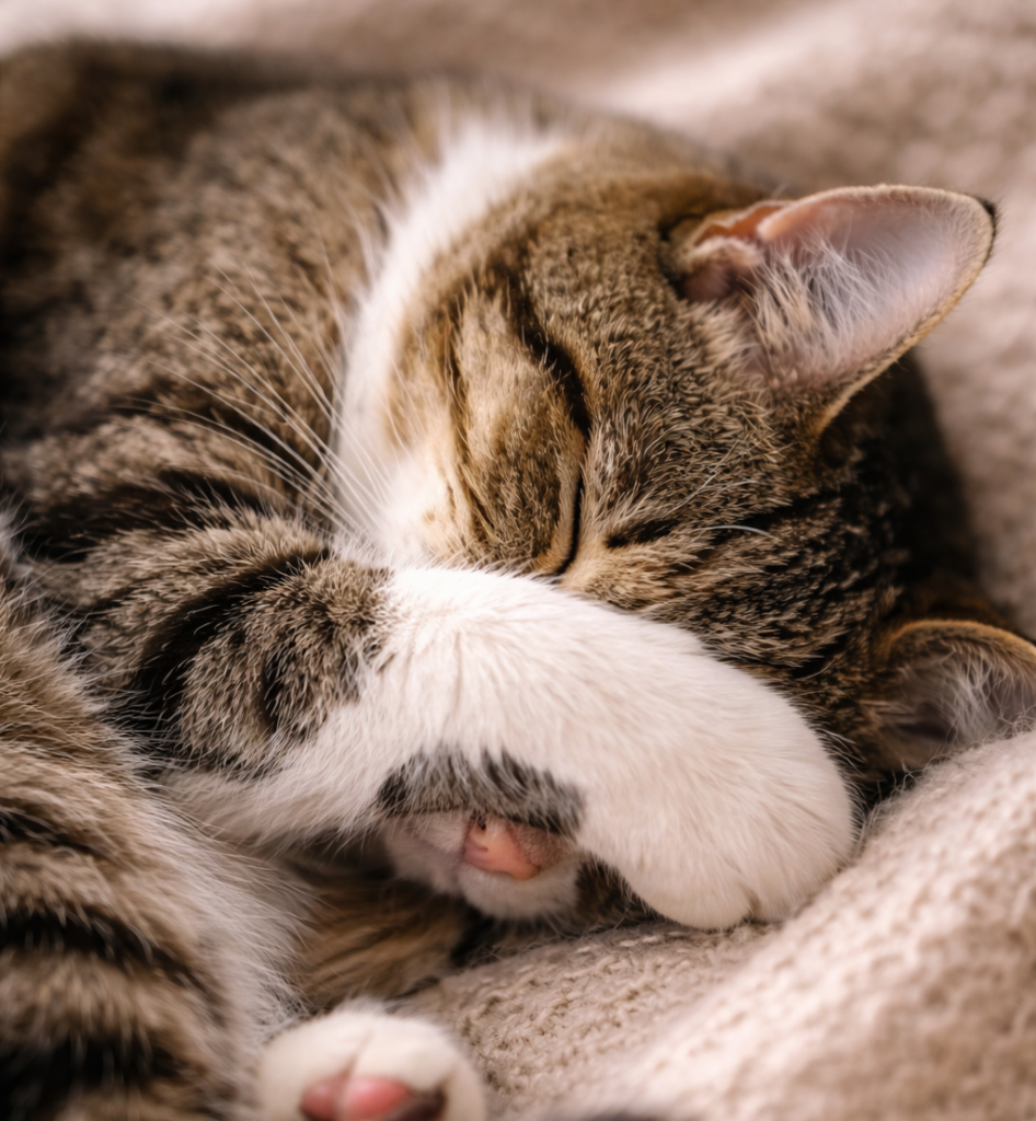 Cats are both predators and prey by nature. Even in a cozy home, their instincts never fully switch off. When a cat chooses a sleeping position, they’re balancing comfort, safety, temperature, and awareness of their surroundings.